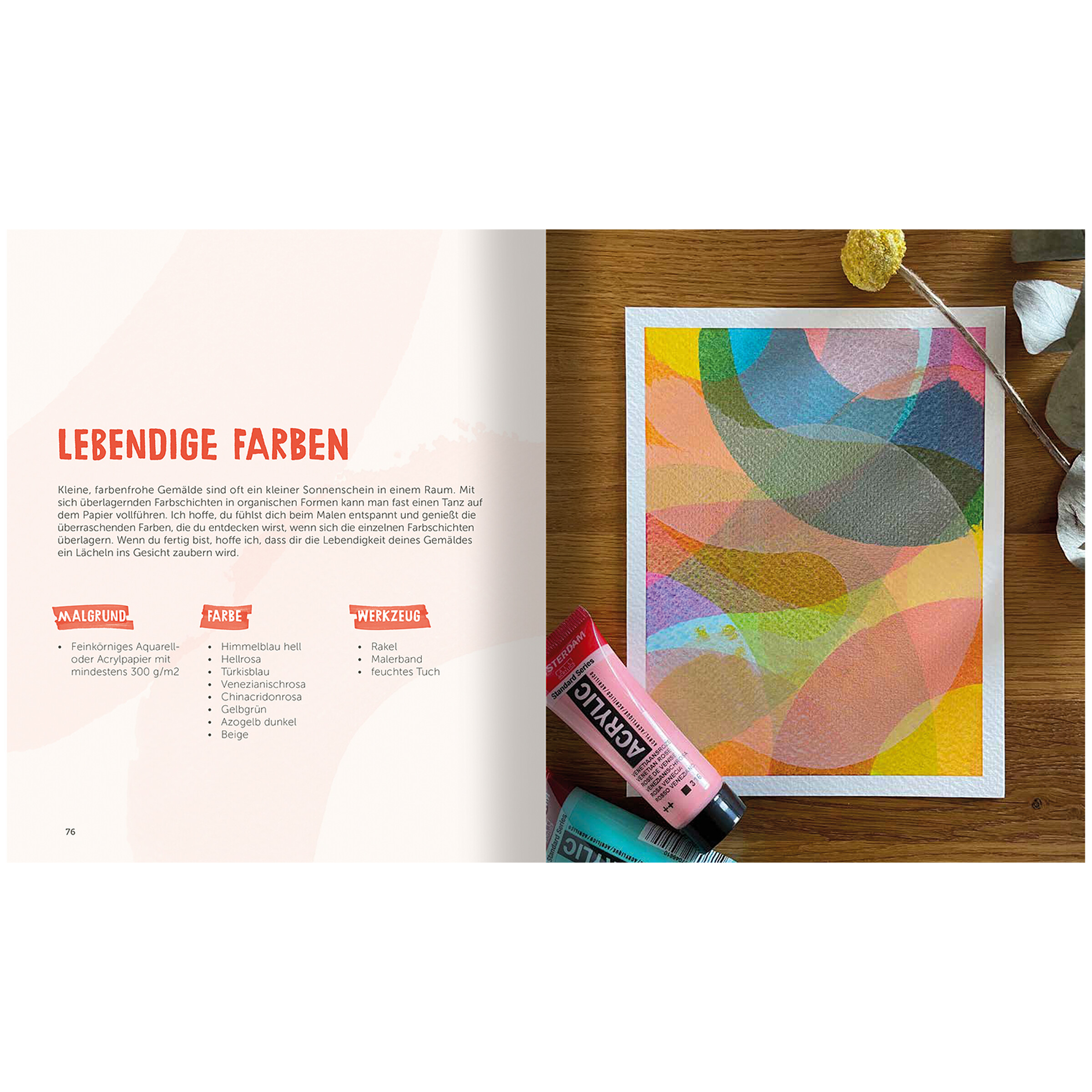 Acryl muss nicht aufwendig sein. Man braucht nicht diverse Pinsel, um mit dem Malen anzufangen: ein Werkzeug, ein Untergrund und ein paar Farben - das ist das Rezept von TikTok-Star aclaracris, mit dem sie ihre Bilder gestaltet. Und nun kannst auch du mithilfe ihrer einfachen Schritt-für-Schritt-Anleitungen selbst zum*r Künstler*in werden. 20 Bilder warten in diesem Buch darauf, von dir gemalt zu werden. Mit den Grundlagen zu Material und Technik wirst du ganz schnell und einfach in die Theorie eingeführt, bevor du mit Rakel und Farbe loslegen kannst. 20 Bilder in Acryl mit der Rakeltechnik ganz einfach selber malen Farbenfrohe Acrylbilder für gute Laune und das Ausleben der eigenen Kreativität Mit wenig Material direkt loslegen Mit allen Grundlagen zu Acryl Schritt für Schritt zu einfach tollen Bildern mit Acryl Der Rakel, auf englisch Squeegee, ist ein einfaches Werkzeug, das ursprünglich in der Drucktechnik zum Abstreifen von zu viel Farbe gedacht war - und wird in diesem Buch zum Star. Als Squeegee-Art bezeichnet aclaracris ihre Kunst und interpretiert so die Rakeltechnik neu. Mit cleveren Farbkombinationen erschafft sie farbenfrohe Bilder, die sich in jedem Zuhause gut an der Wand machen oder als Geschenk für gute Freund*innen eignen. Wer mit Acryl anfangen will, eine neue Technik kennenlernen oder sich mit der Wirkung von Farben beschäftigen möchte, kann dieses Buch als Inspiration und Anleitung nutzen.