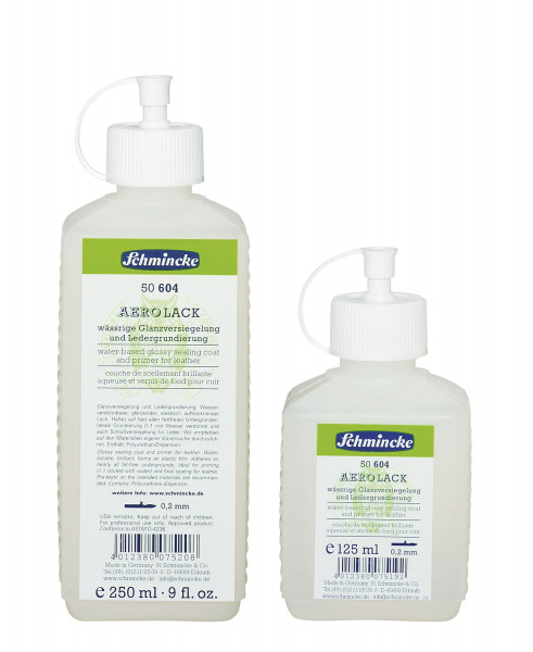 Glanzversiegelung (und Ledergrundierung). Wasserverdünnbarer, glänzend, elastisch auftrocknender Lack. Haftet auf fast allen Untergründen. Grundierung (1:1 mit Wasser verdünnt) auch als Schlussversiegelung für Leder einsetzbar.