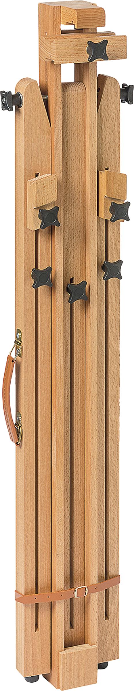 Aus massivem Buchenholz, mit Leinöl behandelt. Äußerst stabile und robuste Ausführung, stufenlos schräg- und waagerecht verstellbar, zusammenlegbar, mit Ledergriff. Solide handwerkliche Verarbeitung. Sehr gutes Preis-Leistungs-Verhältnis.