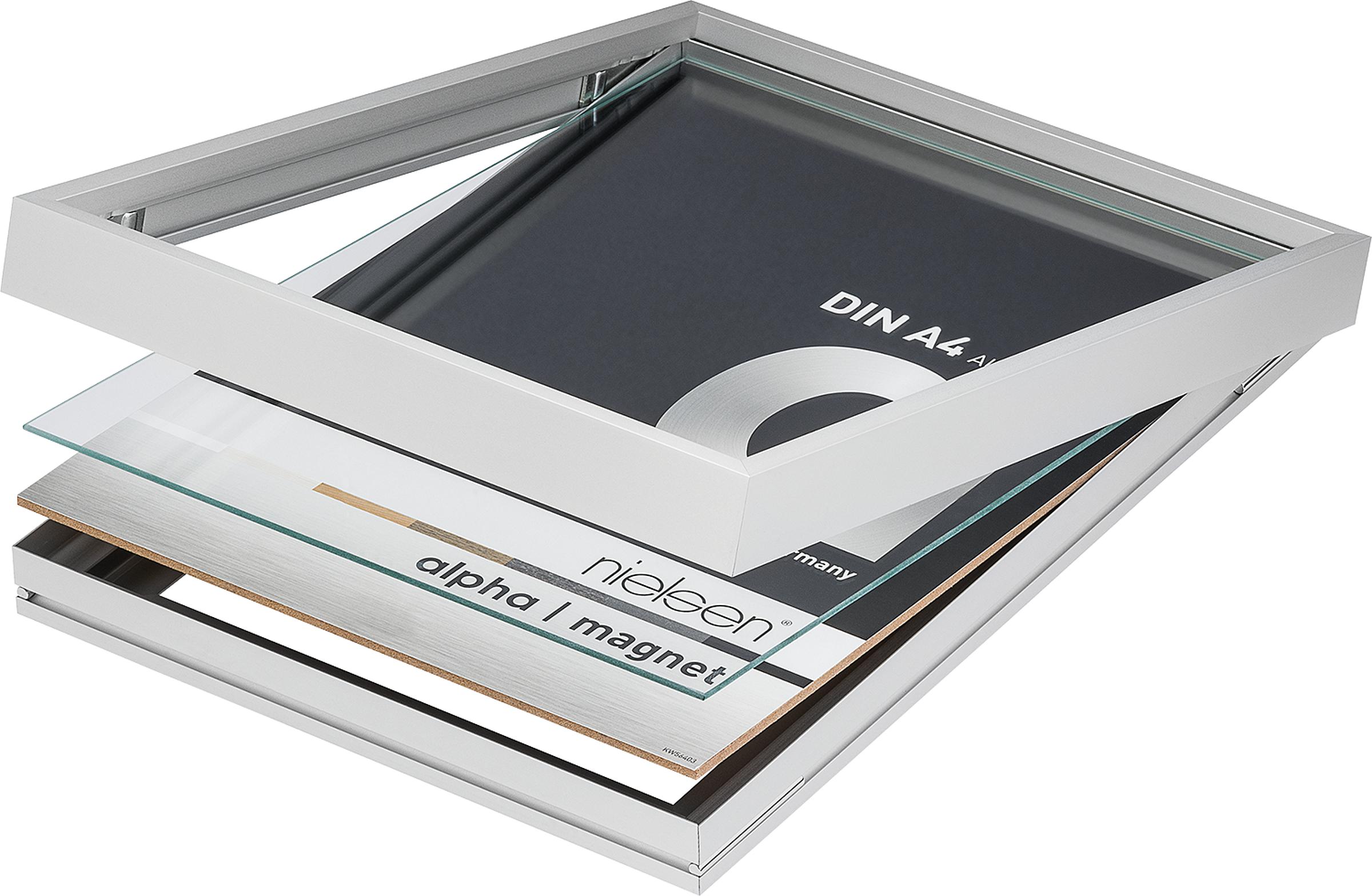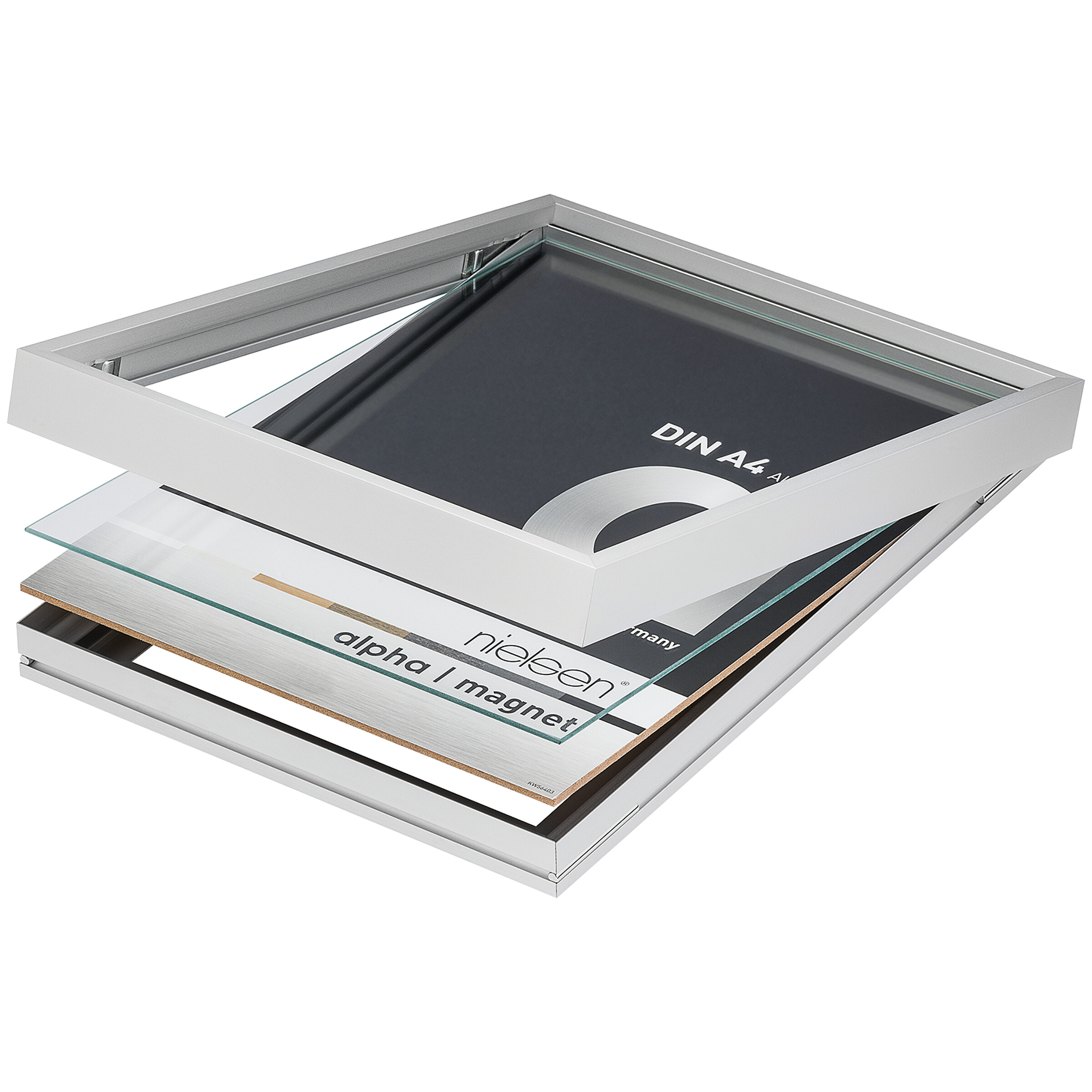 Premium-Bilderrahmen mit Design-Aluminium-Profil und einer einfach zu bedienenden Magnettechnik, die ein unkompliziertes Einrahmen und schnelles Wechseln von Bildern ermöglicht. Dazu lässt sich der Rahmen auf dem Tisch liegend ohne...