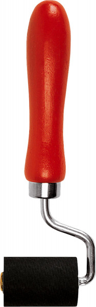 Mit geriefter zylindrischer Walze aus schwarzem Hartgummi. Walzenkern aus Kunststoff. Mit einseitig vernickeltem Bügel und Holzheft, Breite: 45 mm, Ø: 8 mm.