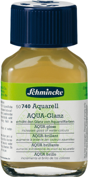 Verstärkt die Glanzwirkung der Aquarellfarbe. Wird mit der Aquarellfarbe gemischt oder nachträglich auf die getrocknete Farbe aufgetragen. Pur ist der Effekt am stärksten, kann aber durch Wasserverdünnung abgeschwächt werden. Aqua Glanz nicht in Näpfchen einbringen!
