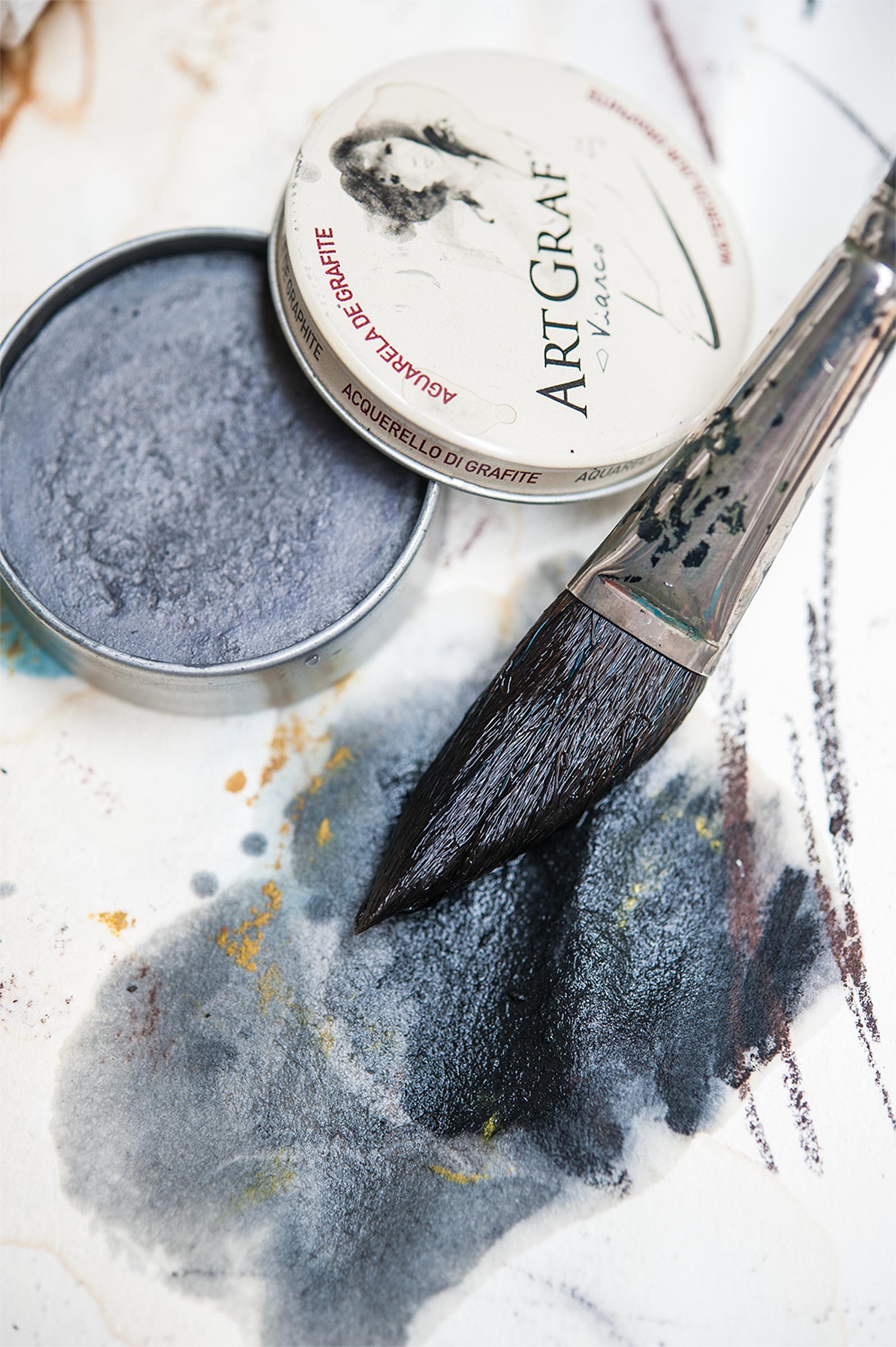 Das gepresste Grafitpulver in der stabilen Alu-Dose lässt sich auf unterschiedlichsten Oberflächen vielseitig einsetzen, wahlweise pur aufgetragen oder mit Wasser vermischt. Je nach Wasserzugabe können vielfältige Grautöne erreicht werden, von transparent bis deckend. Ideal zum Malen oder Zeichnen und als praktischer Begleiter für unterwegs.