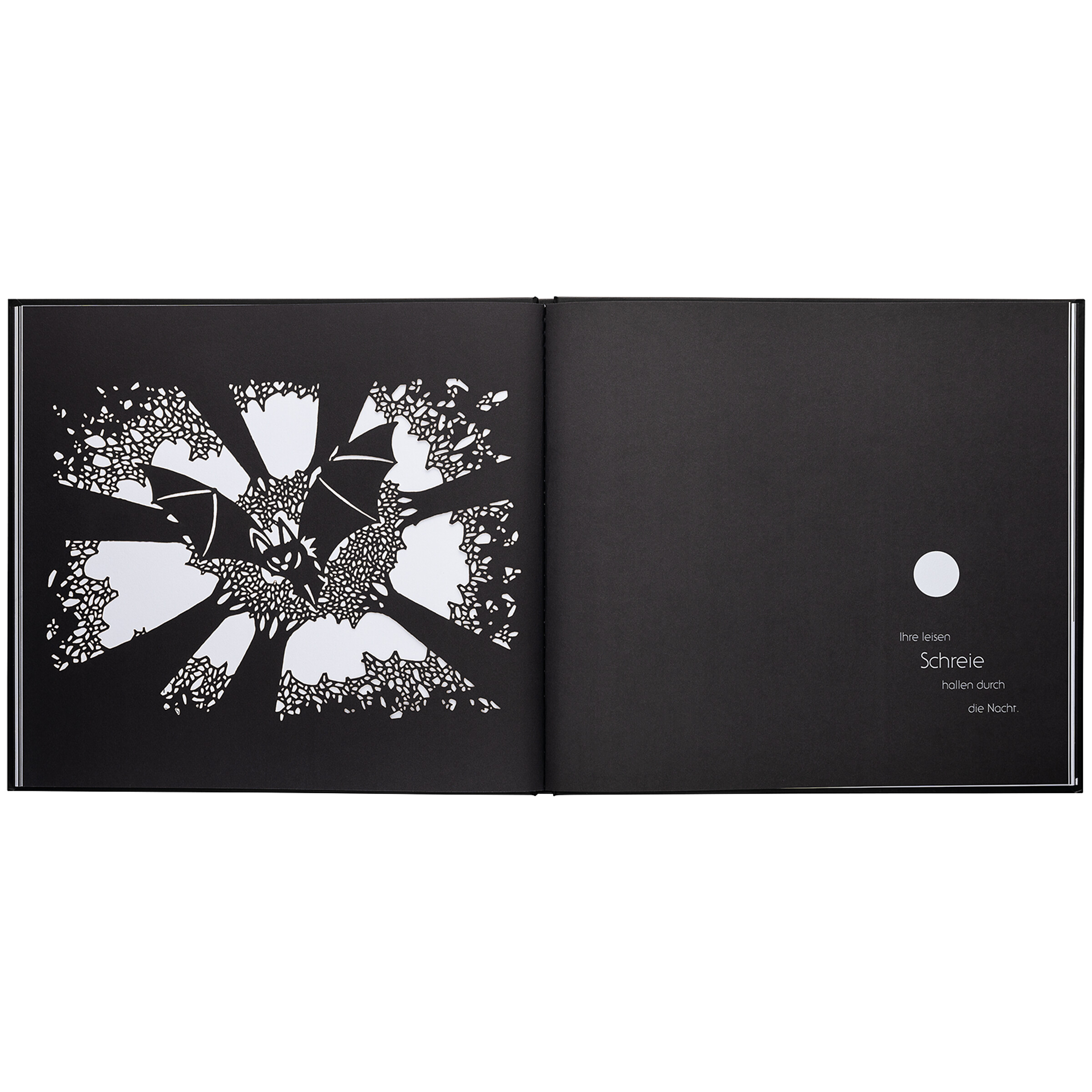 Es ist Vollmond im Wald ...und etwas Sonderbares geht vor sich. Ein Wolf öffnet plötzlich seine Augen, Reineke Fuchs zuckt erschrocken zusammen, und eine Wildschweinmutter beginnt nervös zu grunzen. Was ist das bloß für ein Geräusch, das alle Tiere des Waldes weckt? Sind sie in Gefahr? Alles steht still und lauscht gespannt in den Wald hinein. Welches Geheimnis birgt diese Vollmondnacht? Durch die aufwendige Stanzung, die an Scherenschnitte erinnert, gelingt es dem Autor, die Magie einer Vollmondnacht plastisch heraufzubeschwören und eine Bildergeschichte zu erzählen, die voller Überraschungen steckt.