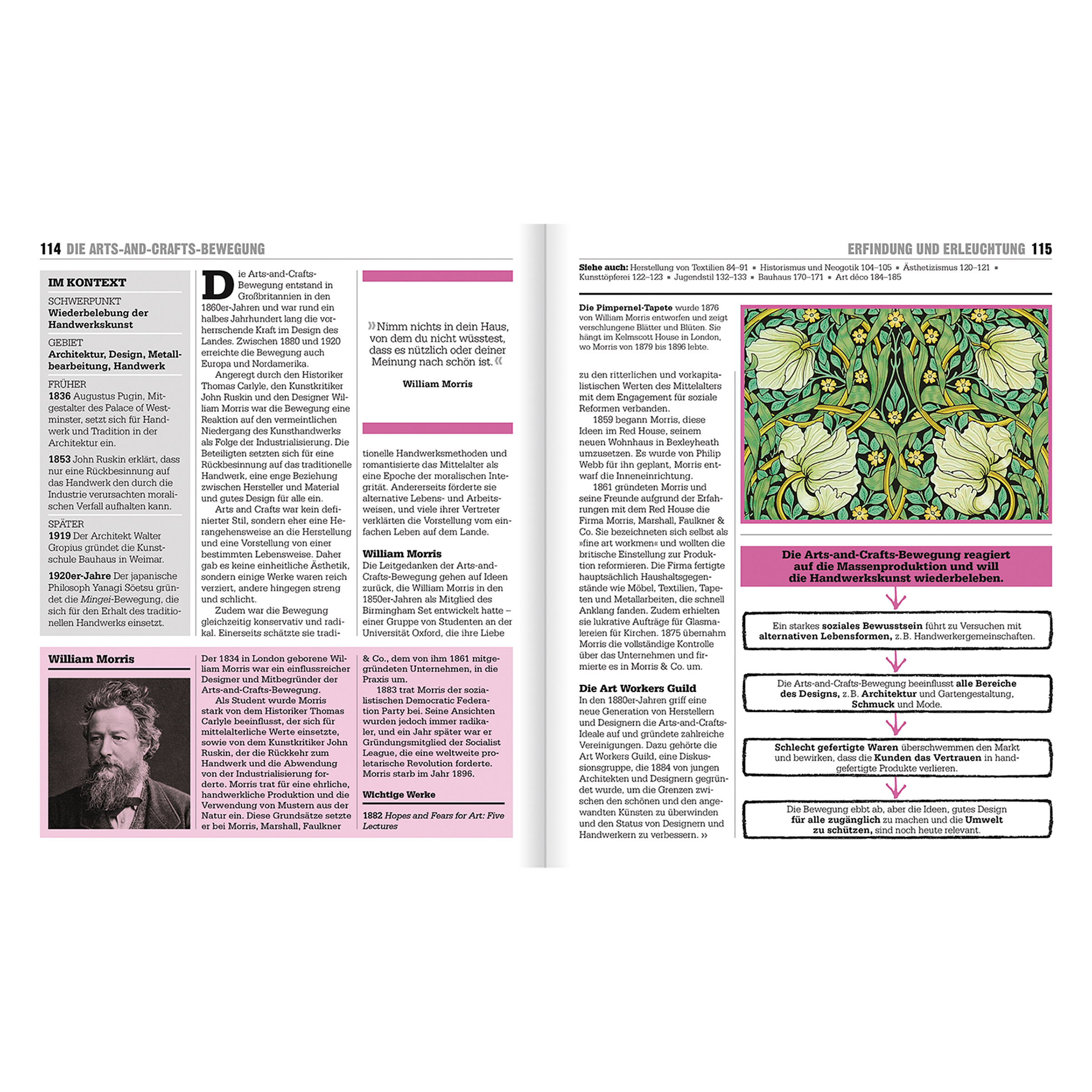 Big Ideas: Das große Design-Buch zum Nachschlagen Was ist ein Entwurf? Wie hat die Massenproduktion Design verändert? Was macht gutes Design aus? Das innovative Nachschlagewerk aus der DK Erfolgsreihe Big Ideas führt durch über 90 große Ideen und die Schlüsselkonzepte des Designs – abwechslungsreich aufbereitet in leicht verständlichen Texten und originellen Grafiken. Von frühen Keramiken bis zum Internet der Dinge, von Bauhaus bis Ford Modell T: Auf eine kurze Einführung in Design und Entwurf folgen die wichtigsten Ideen, Innovationen und Durchbrüche in chronologischer Reihenfolge. Zitate und Biografie-Kästen liefern Informationen zu den Macher*innen hinter den Ideen.