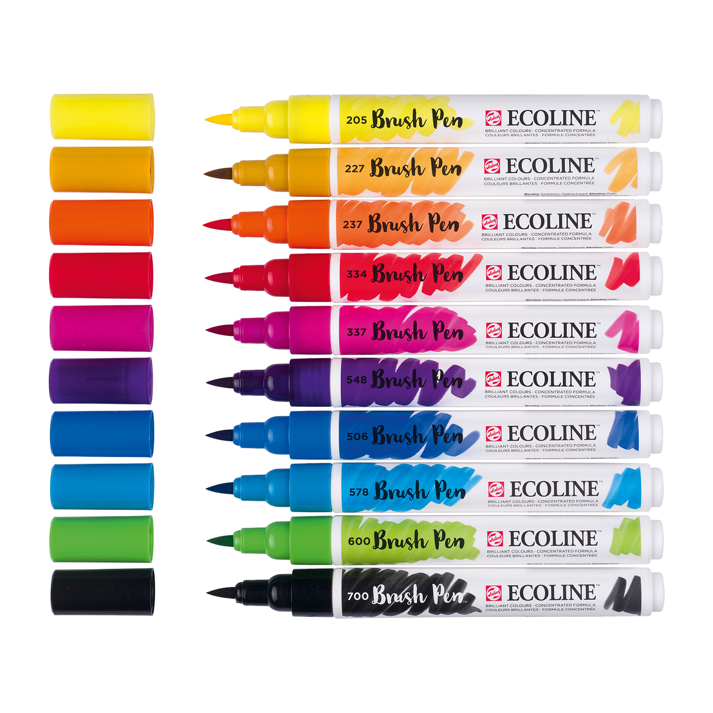 Das Set enthält 10 Ecoline Brush Pens in lebendigen Grundfarben.