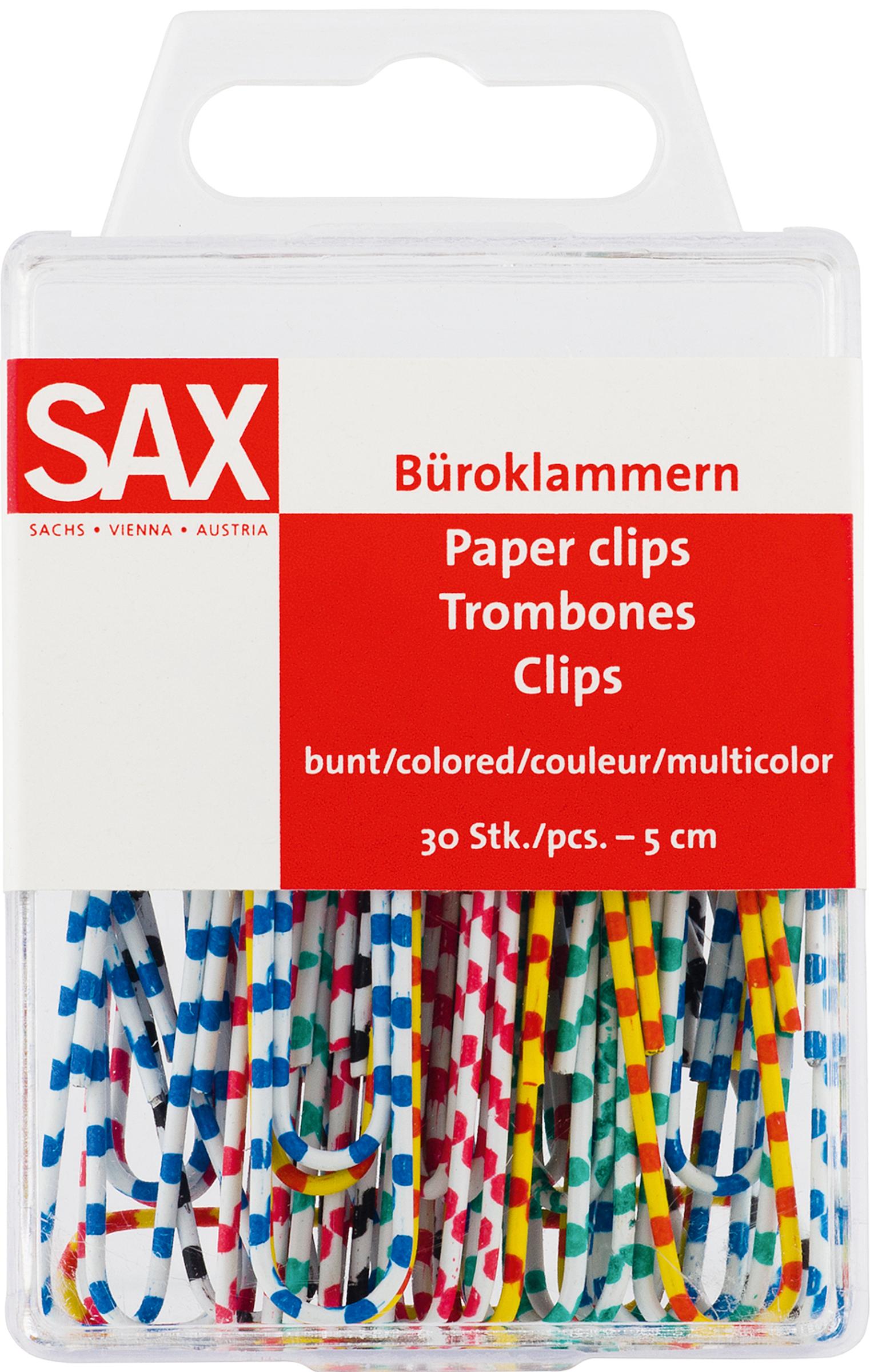 Büroklammern in unterschiedlichen Ausführungen: Silber und Bunt in 2,5 cm Länge oder bunt gestreift mit 5 cm Länge.