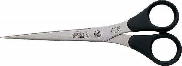 Büroschere in Solinger Spitzenqualität, rostfreier Edelstahl. Zeitgemäßes Design, stabil und messerscharf, angenehme Handhabung durch ausgewogene Gewichtsverteilung, handgerecht geformte Kunststoffgriffe aus dauerhaft beständigem...
