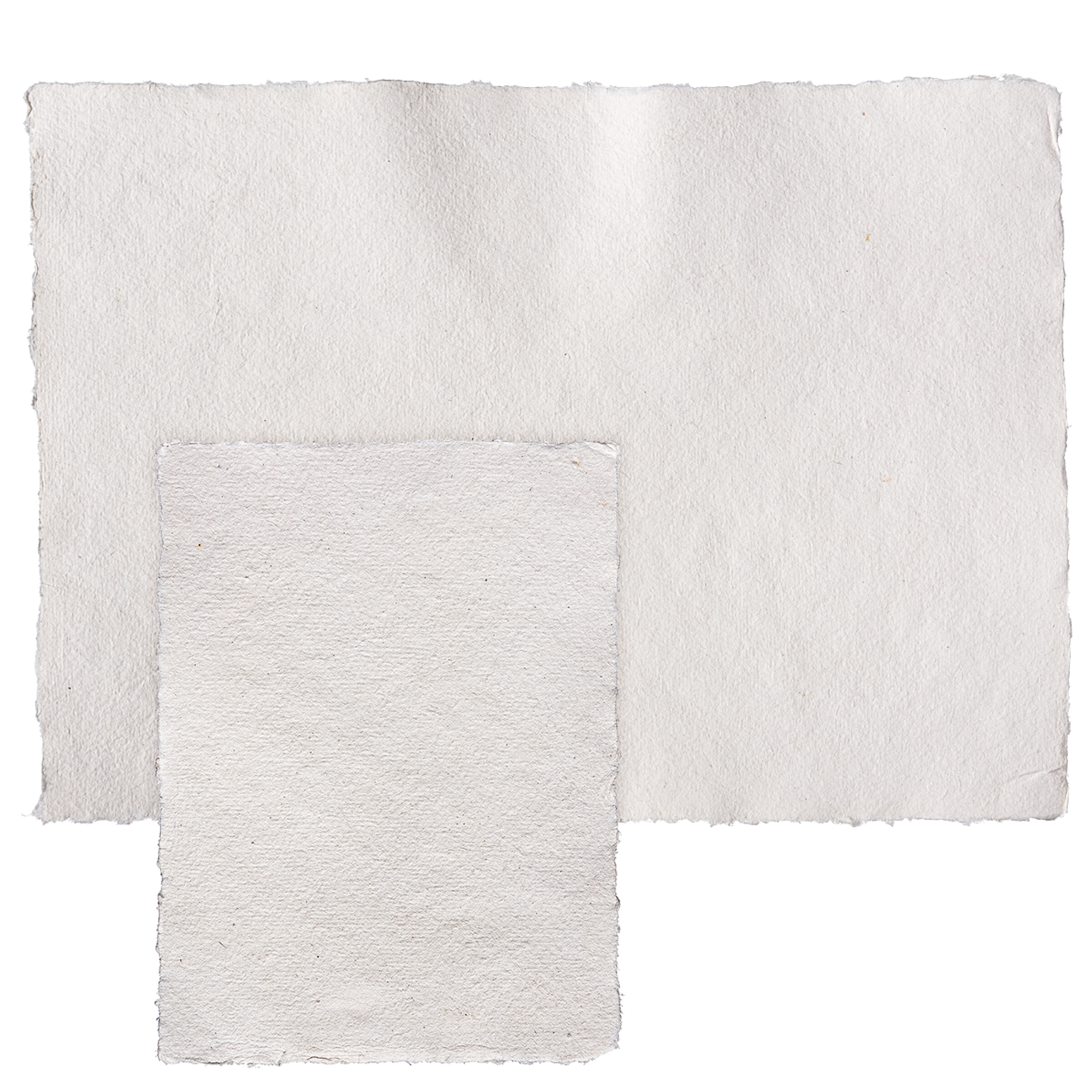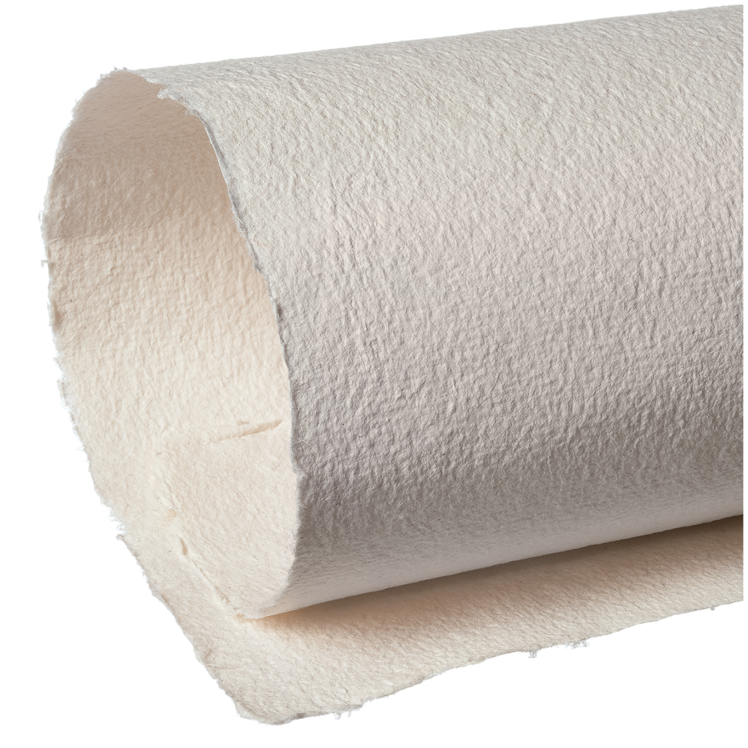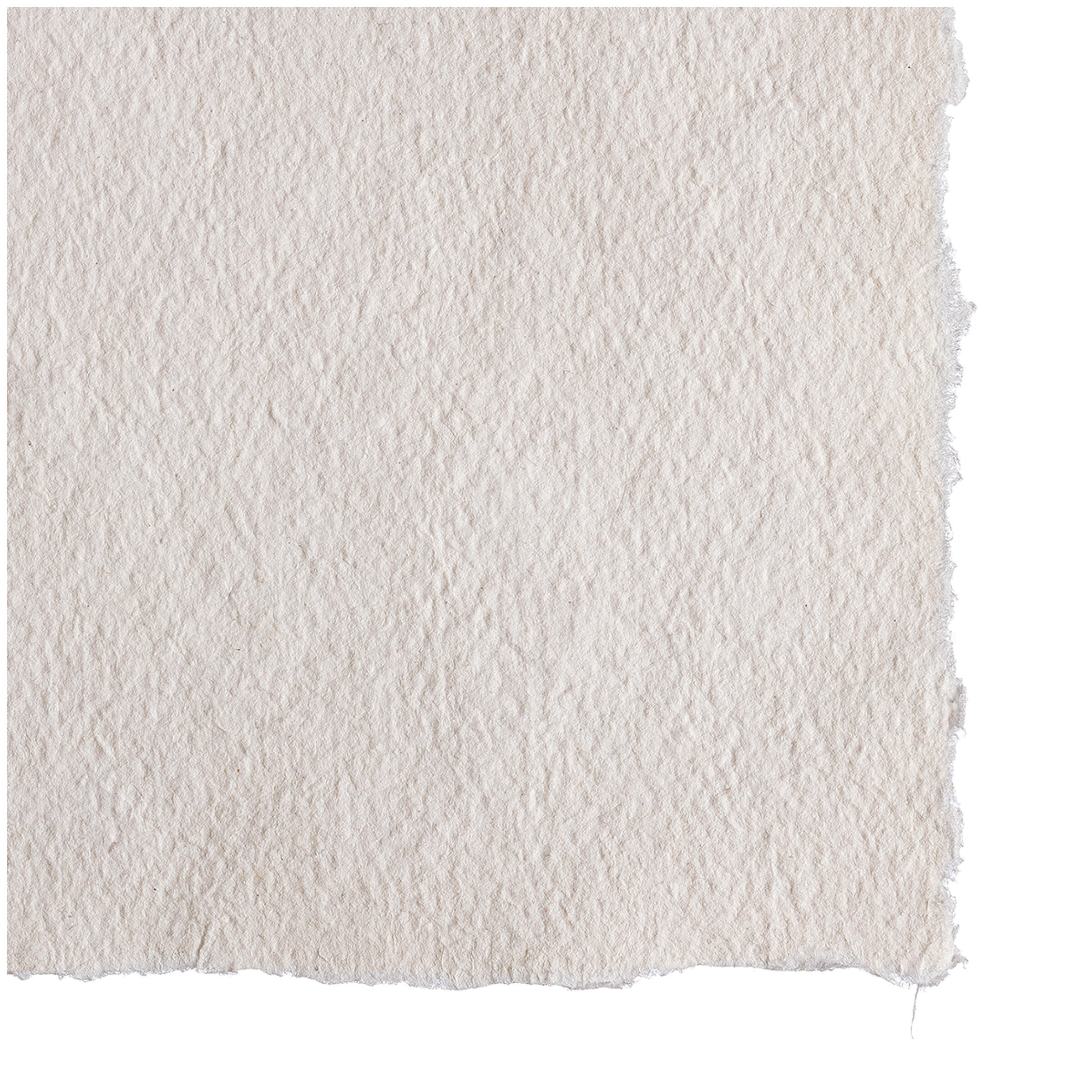 Hergestellt aus 100 % Baumwolle. Lebhafte, unregelmäßige Struktur. 4-seitiger Büttenrand. Von Hand aus der Bütte geschöpft, Bögen werden im Nasszustand gerissen.