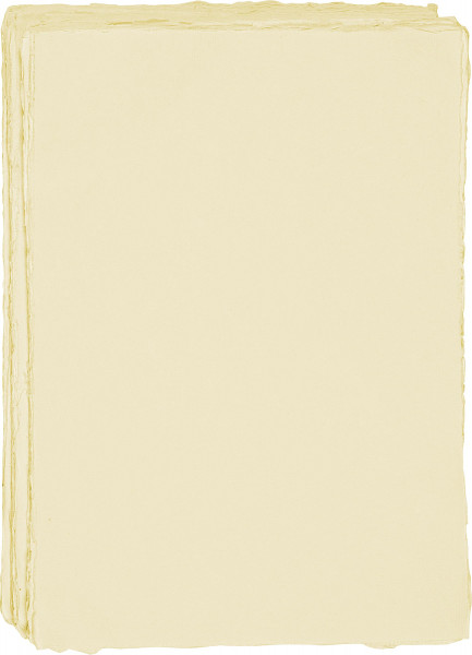 Aus 100 % Baumwolle, matte Oberfläche, pH-Wert 6–6,5. Mit 4-seitigem Büttenrand, von Hand aus der Bütte geschöpft. Die Bogen werden nass getrennt (gerissen). Hergestellt nach 2.000 Jahre alter Tradition. Geeignet für alle Drucktechniken sowie für Tintenstrahldrucker, aber auch als Briefpapier. Format DIN A5, DIN A4 und DIN A3 in Paketen à 100/50/25 Bogen zu einem sensationellen Preis. Bei Naturpapieren sind leichte Farbabweichungen möglich.