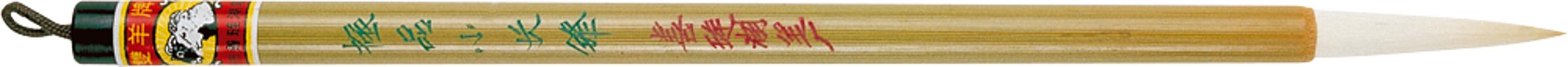 Dieser Pinsel ist aus feinstem Ziegenhaar gefertigt. Haarlänge ca 3,5 cm, Pinsellänge 17 cm. Der Bambusstiel ist mit roten und grünen chinesischen Schriftzeichen verziert. Schwarzes Endstück. Praktische Schlaufe am Holzstiel zum Aufhängen.