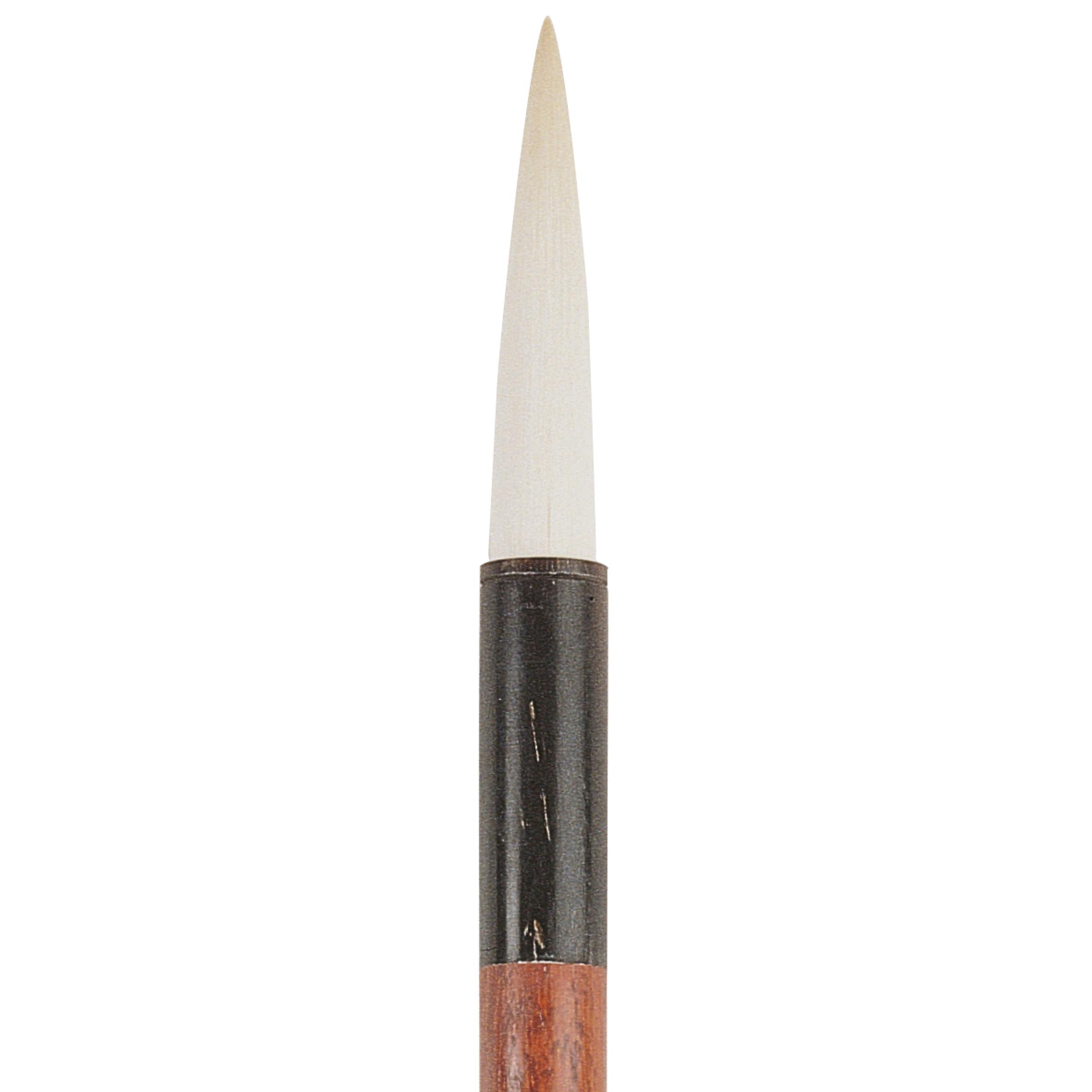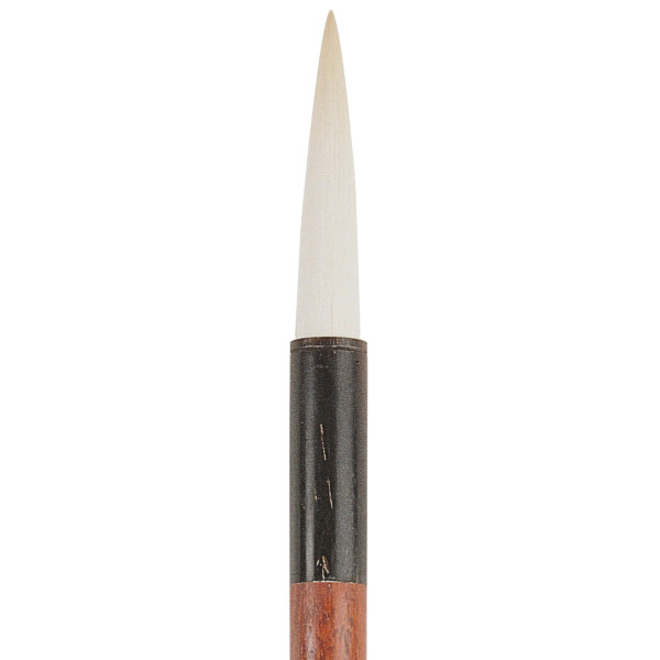 MehrPinsel mit weißem Ziegenhaar und verziertem Holzstiel. Haarlänge ca. 4,6 cm, Stiellänge 21,9 cm. Mit praktischer Schlaufe am Hornstiel zum Aufhängen. Der hochwertige Pinsel kommt in angenehm schlichter Aufmachung daher. Mit dekorativem Chinabrokat überzogener Kartonkasten.