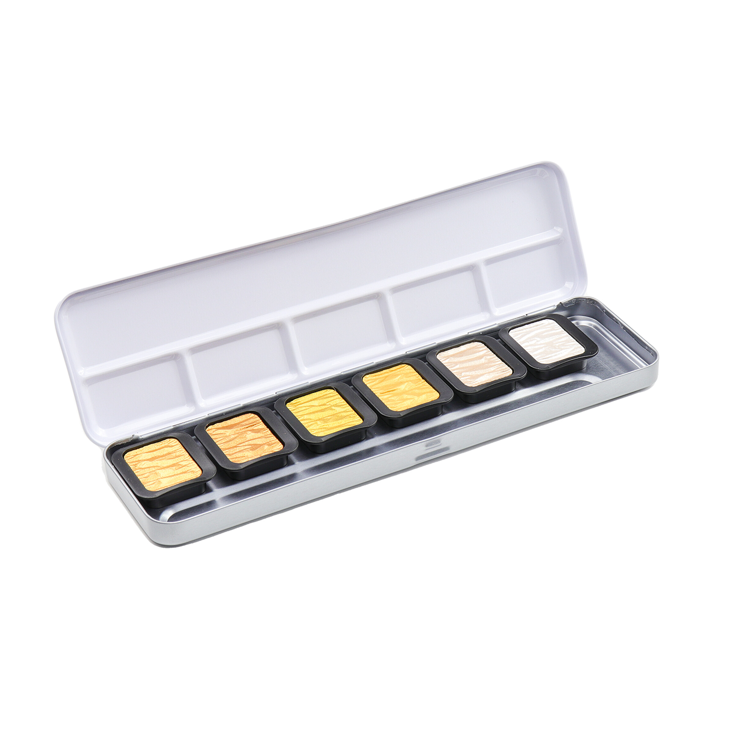 Die wasserlöslichen Perlglanzfarben sind hochpigmentiert, sehr lichtecht und besonders gut anlösbar. Sie lassen sich mit Pinsel oder Feder auftragen, haften auf unterschiedlichsten saugenden Untergründen (Aquarellpapier, Holz, Stein...