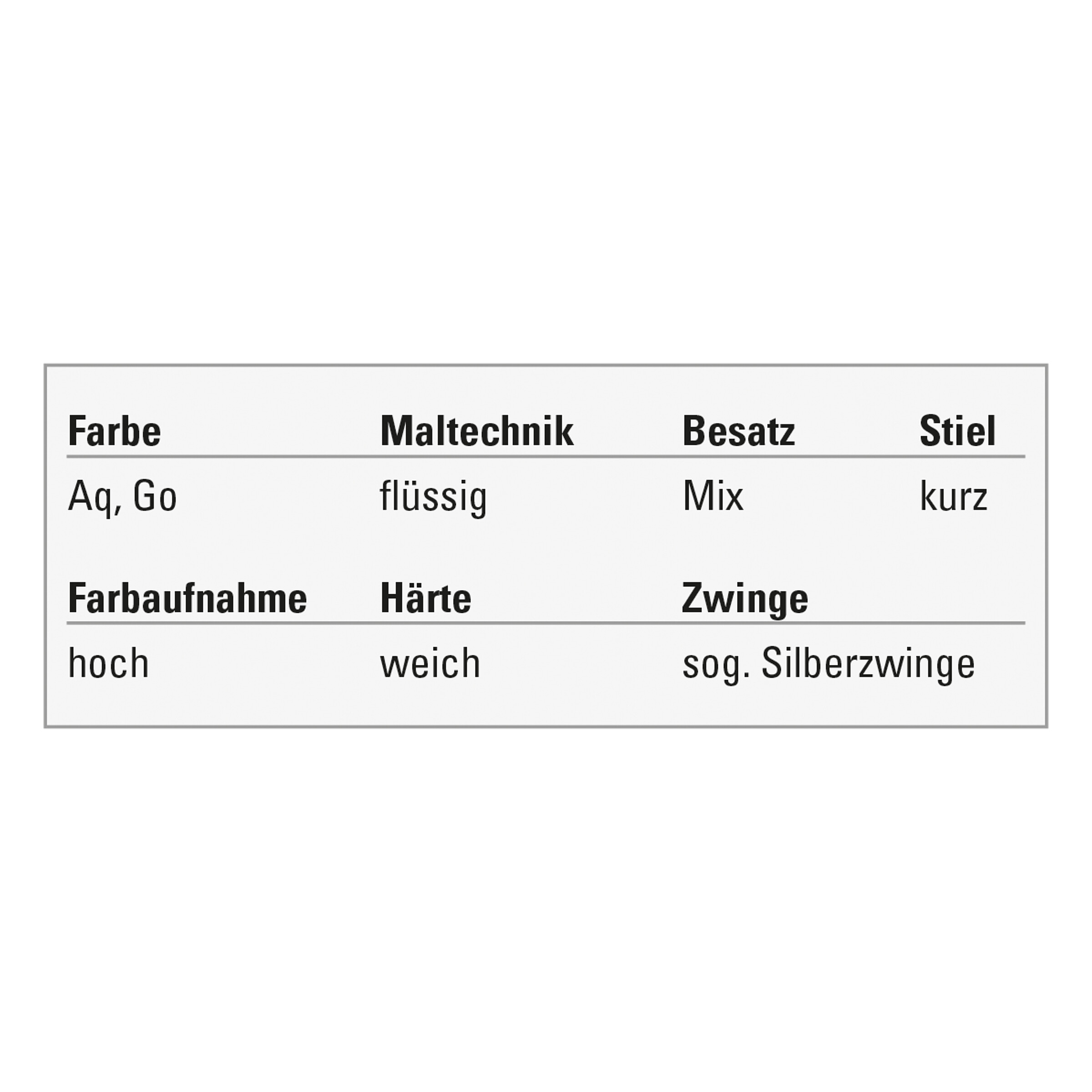 Die runden Aquarellpinsel der Cosmotop Mix B-Serie bestehen aus einer Komposition klassischer Naturhaare von Marder-, Feh und Iltis in Verbindung mit hoch elastischen Kunstfasern. Dadurch vereinen sie die saugenden Eigenschaften der...