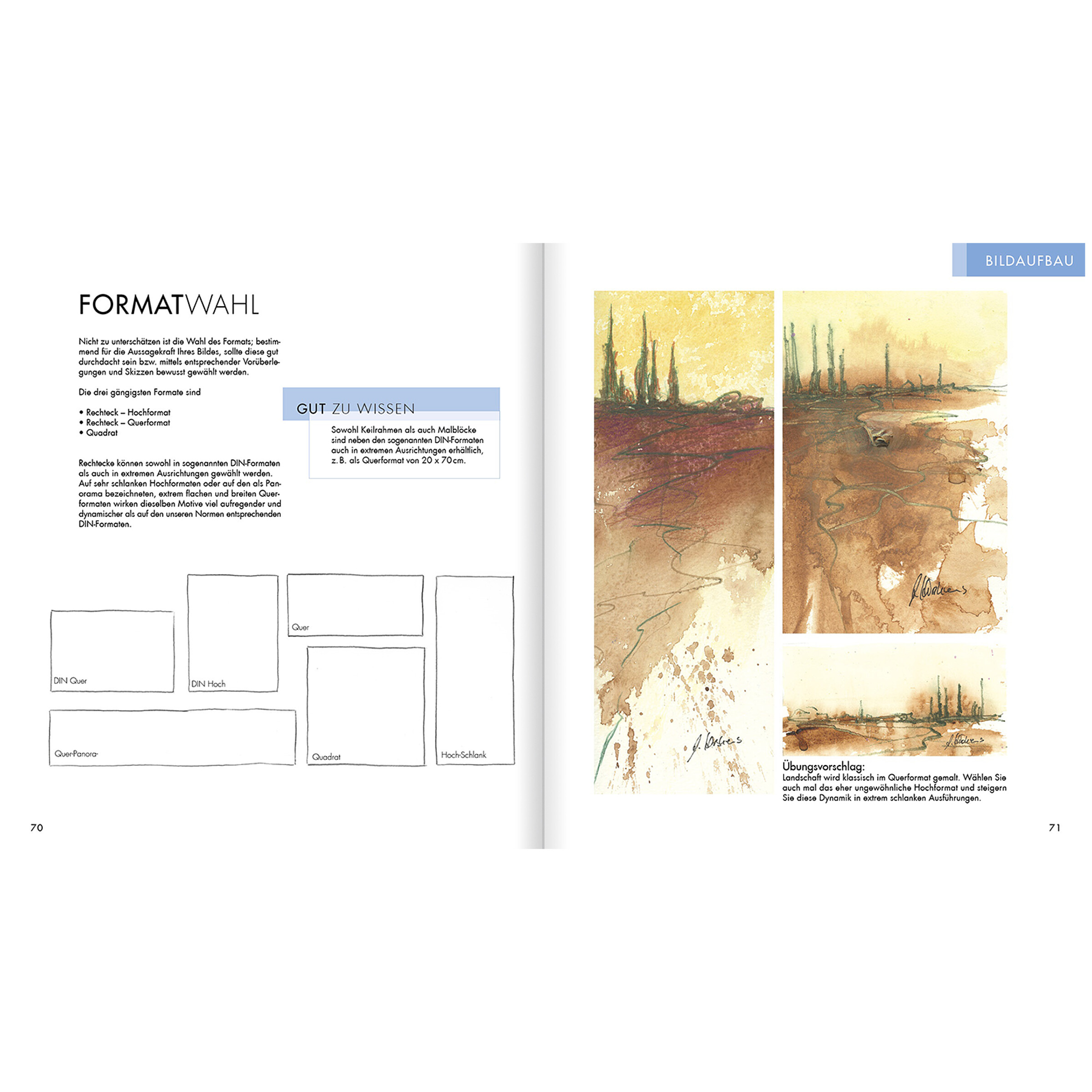 Die Autorin stellt alle wichtigen Informationen, begonnen beim Material, über Werkzeuge und Hilfsmittel bis zur Farbenlehre, anschaulich dar. Mal- und Strukturtechniken finden dabei ebenso ihren Platz wie Ausführungen zur Bildkomposition...