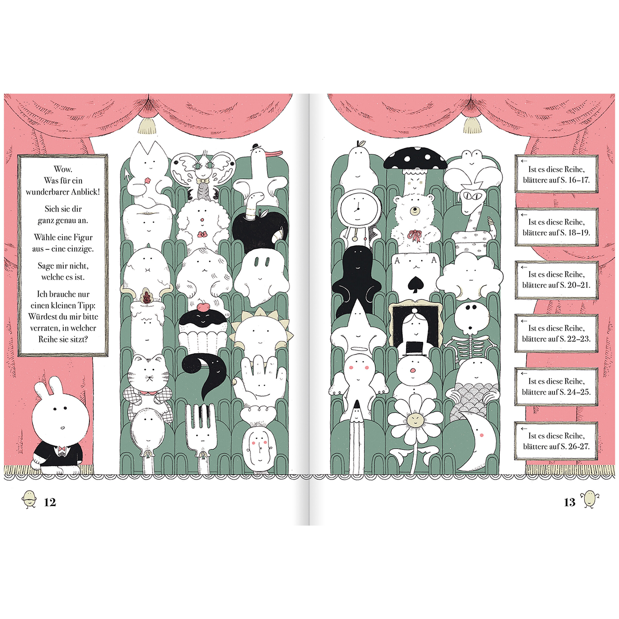 Lady Rabbit, die kleine Magierin in diesem Zauberbuch, beherrscht die hohe Kunst: Sie liest deine Gedanken! Wähle einen Gast aus dem großen Publikum ihrer Zaubershow - nicht verraten, welchen! - und sie sagt dir zweifelsfrei, wer es war....