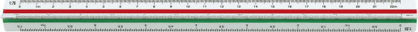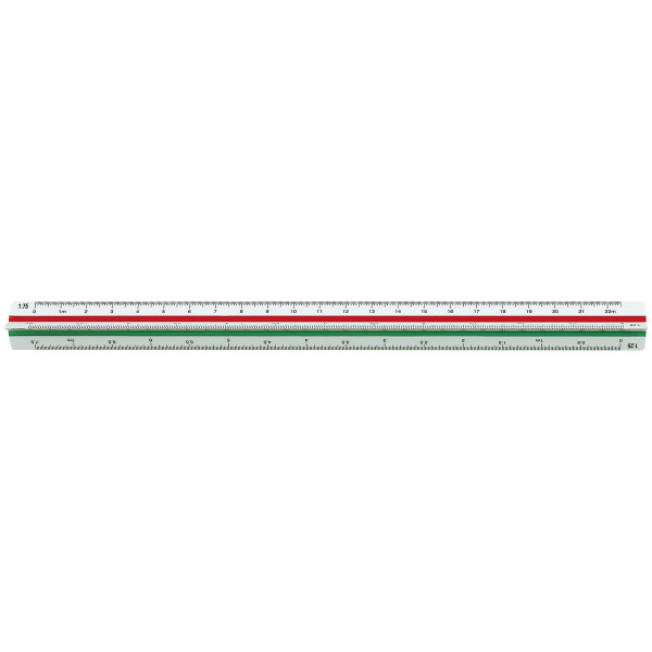 Aus weißem Kunststoff mit drei farbigen Hohlkehlen und großer Vorbezifferung. Drei Ausführungen mit verschiedenen Maßstäben.