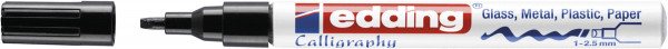 Lackmarker mit Kalligrafie-Keilspitze und ventilgesteuertem Tintenfluss zum licht-, wisch- und wasserbeständigen Beschriften und Signieren glatter Oberflächen, z. B. Glas, Metall oder Kunststoff. Die geruchsarme, lackartige Pigmenttinte trocknet schnell und ist dank der hohen Deckkraft auch für dunkle und transparente Materialien geeignet. Ohne Zusatz von Toluol/Xylol.