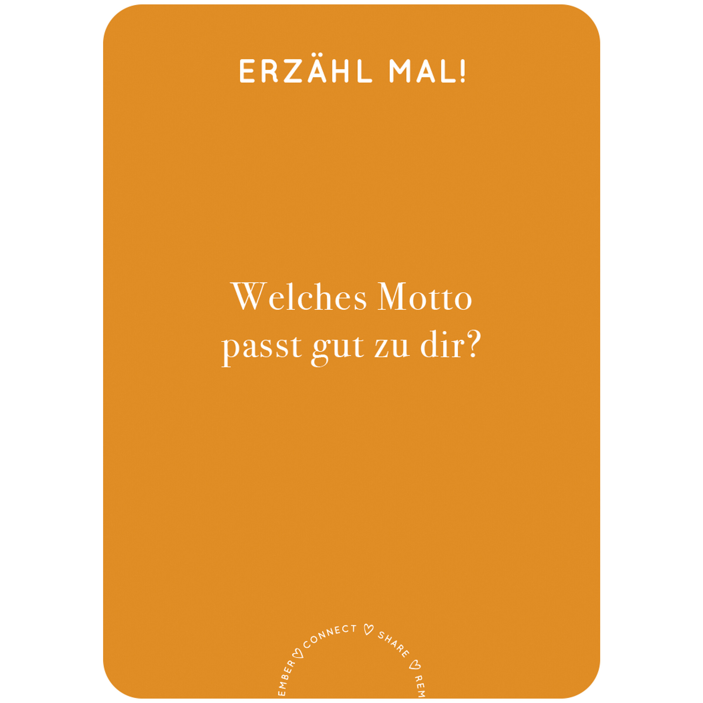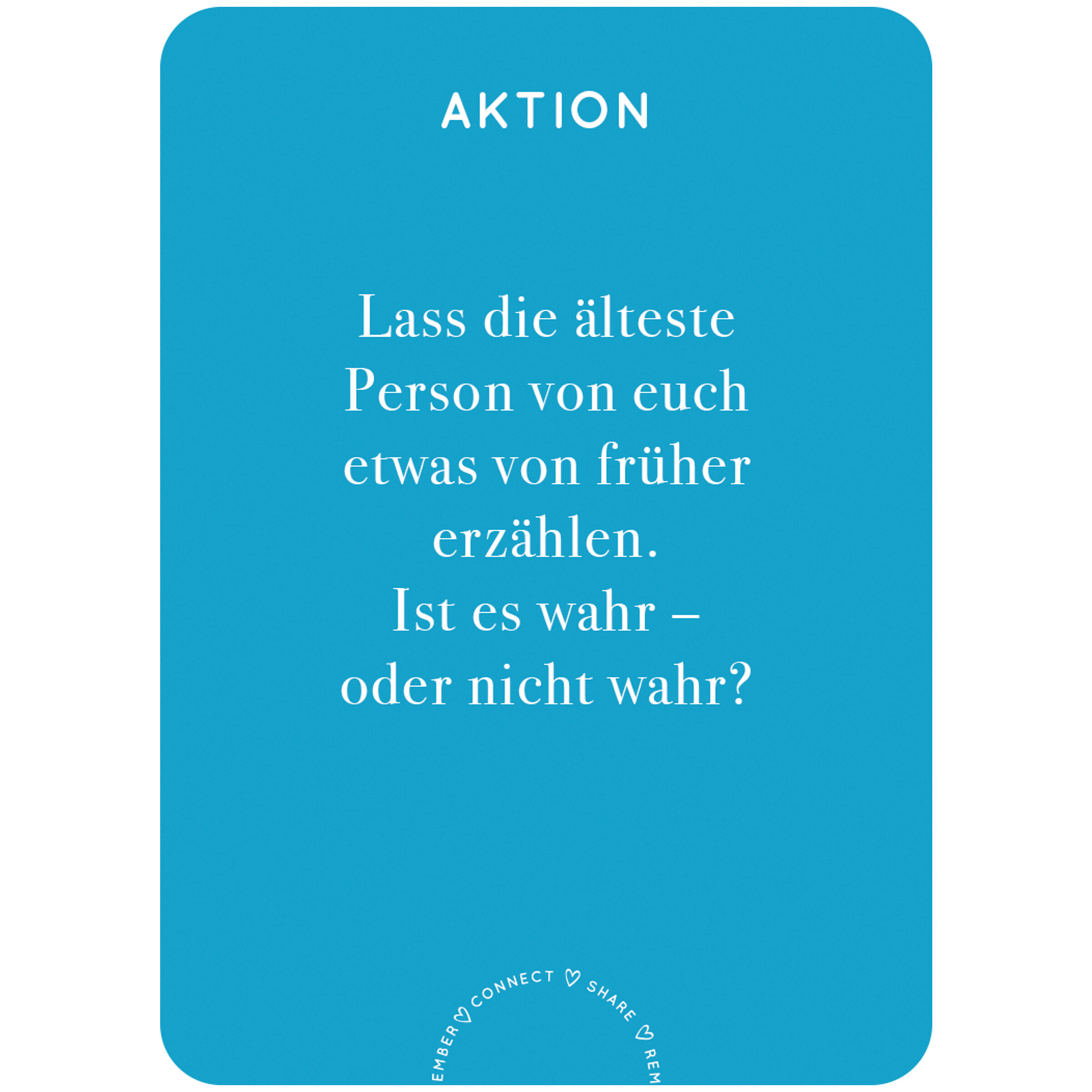 Mit dem kurzweiligen "Erzähl mal!"-Spiel entstehen spannende Gespräche, verblüffende Anekdoten und Erinnerungen treten zutage. Das stellt ganz neue Verbindungen her und eröffnet einen neuen Blick auf die eigene Geschichte.