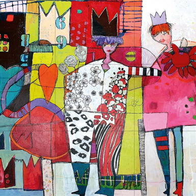 Ist der Untergrund entstanden, dürfen die Charaktere in das Bild einziehen: Die kindlich-naive Darstellungsweise macht das Bild lebendig und berührt.
