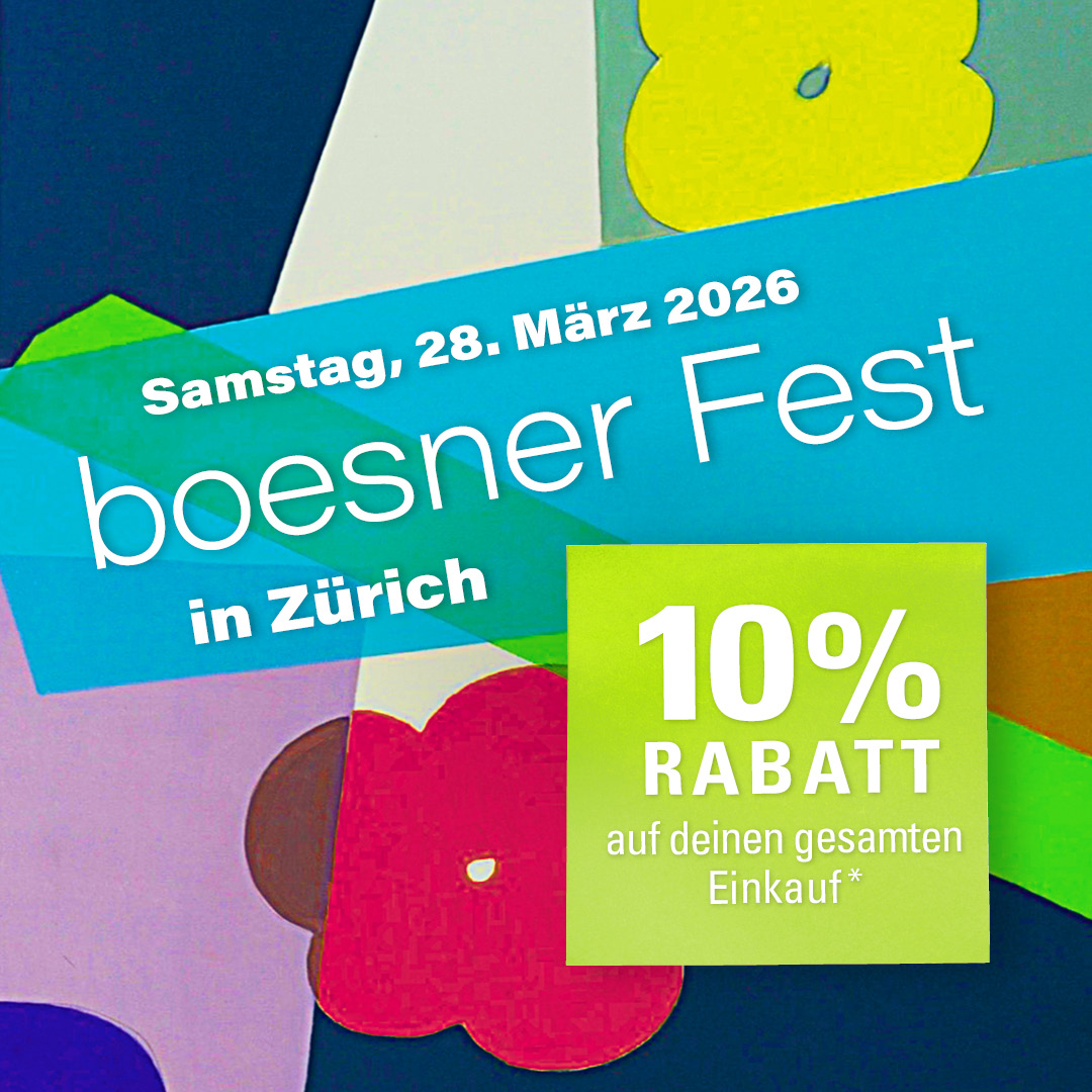 Wir laden Sie herzlich ein zum boesner Fest in Zürich. Nehmem Sie an unserem Wettbewerb teil und gewinnen Sie mit etwas Glück einen Atelier boesner Gutschein im Wert von CH 600.-. Profitieren Sie den ganzen Tag über von 10% Rabatt* auf das gesamte boesner-Sortiment, inklusive Massanfertigung von Bilder- und Keilrahmen.