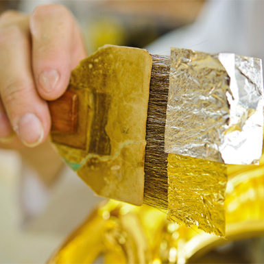 In diesem Kurs geht es um moderne Blattmetallisierung von Echtgold und Schlagmetall.