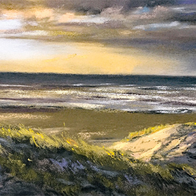 Mit Softpastellen lassen sich die Farb- und Schattenspiele im Sand, das Changieren und die Bewegung der Meeresoberfläche sowie die wechselnden Lichtstimmungen an den Küsten optimal wiedergeben.