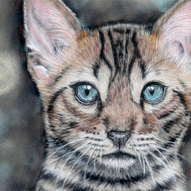 Haar für Haar, Strich für Strich – in diesem Workshop lernen Sie, wie man Katzen realistisch mit Pastellstiften auf Sandpapier (Pastelmat) malt. Diese Art der Tierporträts benötigt viel Geduld beim Malen, aber es lohnt sich auf jeden Fall!