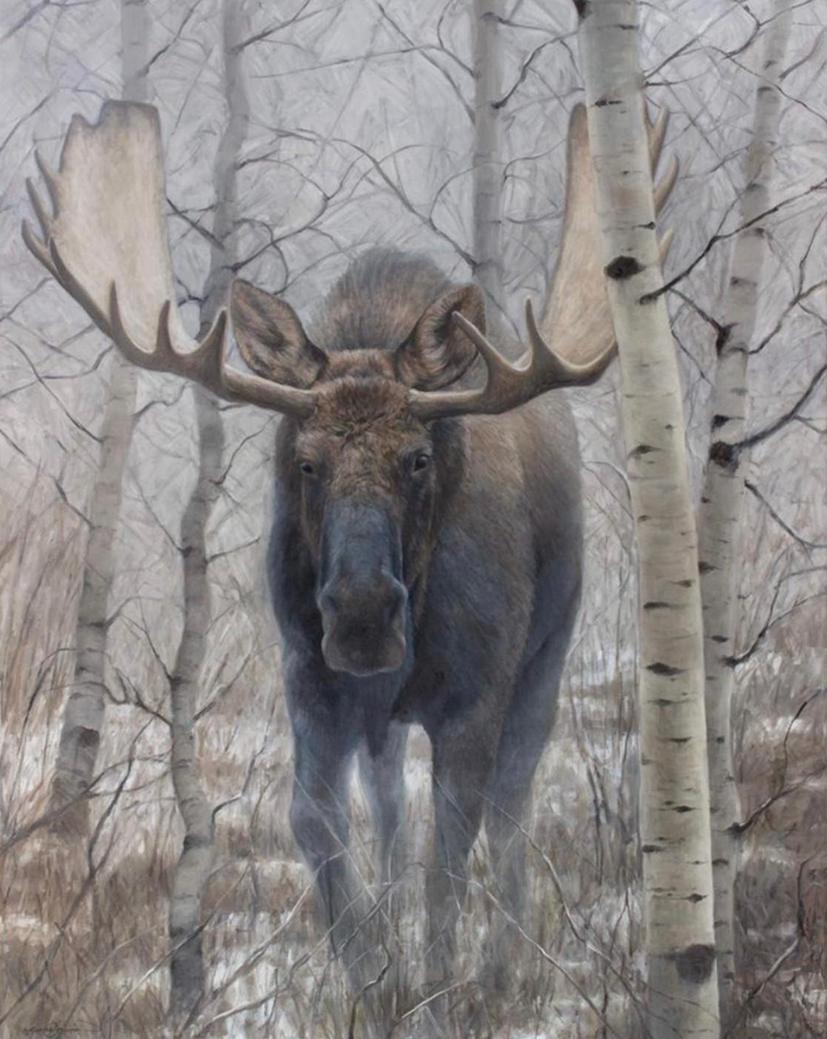 Ein Elch geht nicht, er schreitet aus dem Wald heraus. Diesen mystischen Moment einzufangen und malerisch auf der Leinwand (im Format 50 x 60 cm) festzuhalten, zeigt Ihnen Herdin Radtke in diesem Kurs. Er beherrscht diese Technik und vermittelt sie mit spielerischer Leichtigkeit. Ihm beim Malen zuzusehen, ist schon eine Freude!