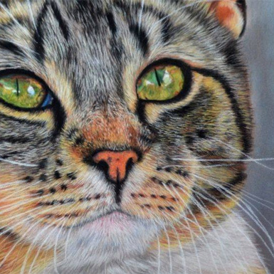 Haar für Haar, Strich für Strich – in diesem Workshop lernen Sie, wie man Katzen realistisch mit Pastellstiften auf Sandpapier (Pastelmat) malt. Diese Art der Tierporträts benötigt viel Geduld beim Malen, aber es lohnt sich auf jeden Fall!