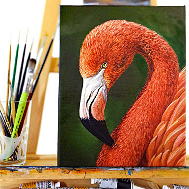 Erleben Sie die Faszination realistischer Tiermalerei und erschaffen Sie ein beeindruckendes Gemälde eines prachtvollen Flamingos in Acryl.