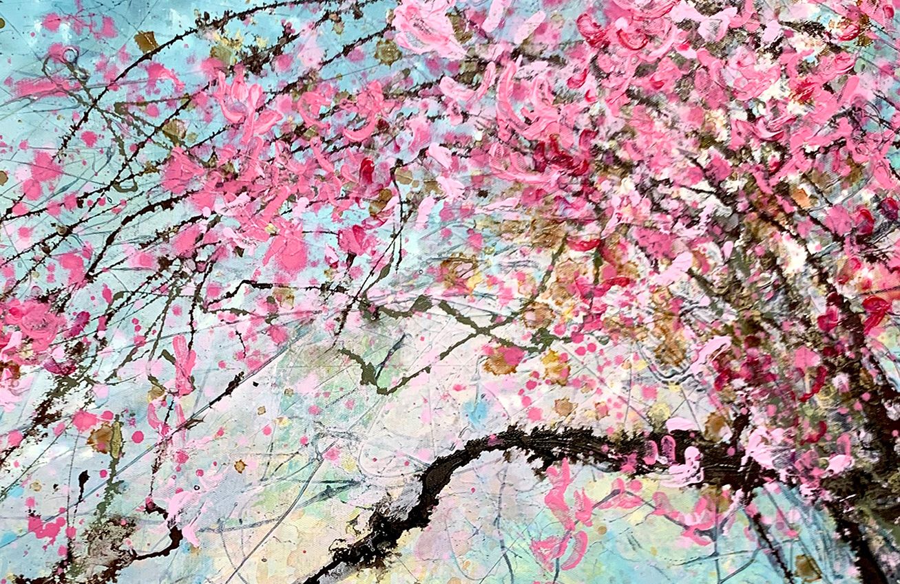 Bei diesem Kurs kommt kein Pinsel zum Einsatz! Wir verwenden Rollen, Spachtel, alte Stoffstücke oder malen direkt aus der Tube in der sogenannten Impasto-Technik. Die Farbe schütten wir, spritzen sie, tragen sie mit Stäbchen auf – wir lasieren mit der Tusche, sprayen mit Marmor-Effekten und vieles mehr. Sie lernen den Umgang in der Gestaltung mit der Mixed Media Technik, basierend auf Acrylfarben. Verschiedene Farbmedien werden miteinander vermischt und die Wirkungen erkundet. Dabei werden auch die Themen wie Licht, Tiefe oder Bildkompositionen erklärt. Die Kursleiterin zeigt und erklärt in einem schöpferischen Prozess Schritt für Schritt, wie Sie einen Blütenzweig oder sogar einen Baum voller Blüten malen.