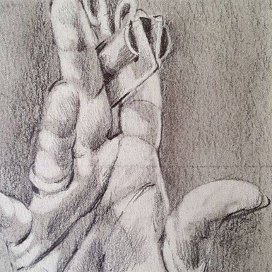 Durch Auf-den-Kopf-Stellen der Vorlage, Negativräumesehen-lernen und Blindzeichnen überrumpeln wir die linke Seite unseres Gehirns (rational, vernünftig, analytisch orientiert).