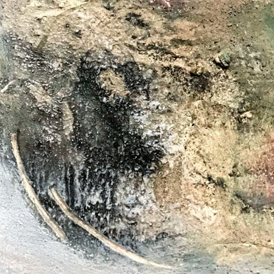 In der Kombination mit Strukturen aus selbst hergestellten Spachtelmassen, bringt uns Asche als natürliches Pigment auf neue Wege.
