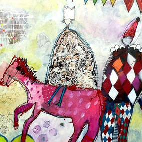 Ist der Untergrund entstanden, dürfen die Charaktere in das Bild einziehen: Die kindlich-naive Darstellungsweise macht das Bild lebendig und berührt.