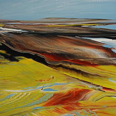 Bei dieser Vorführung von Hinrich Schüler lässt sich live miterleben, wie aus anfänglichen scheinbar chaotischen Farbaufträgen mit experimentellen Werkzeugen allmählich Räumlichkeit entsteht, aus welcher sich nach und nach Landschaften herauskristallisieren. Diese abstrakten, atmosphärischen Gemälde leben von ihrer Farb- und Tiefenwirkung und spiegeln eher innere als streng realistische Landschaften, obwohl sie so oder ähnlich in der Natur vorkommen könnten.