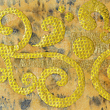 Für die Verarbeitung stellt die Dozentin haltbare Gelmedien vor und zeige Ihnen, wie Sie mithilfe dieser die Ornamente so mit dem Bild verbinden, dass alles „aus einem Guss“ ist.