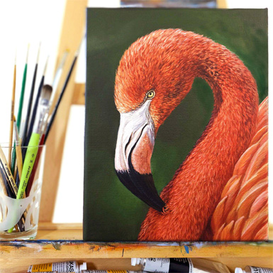 Erleben Sie die Faszination realistischer Tiermalerei und erschaffen Sie ein beeindruckendes Gemälde eines prachtvollen Flamingos in Acryl.