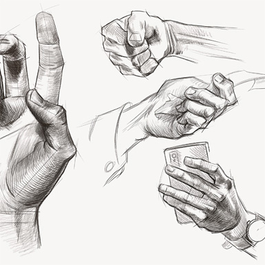 Dieser Kurs bietet einen einfachen Zugang zu diesem Thema, ähnlich wie Comiczeichner und Animatoren es tun. Es ist nicht notwendig, vor einem medizinischen Atlas zu sitzen und alle anatomischen Details abzupausen. Im Gegenteil, Sie lernen, wie man schnell Hände nach einem Schema konstruiert, allgemeine Umrisse meistert und die Hand in die Perspektive setzt.