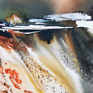 Halbabstrakte Malerei in Aquarelltechnik und Tinte