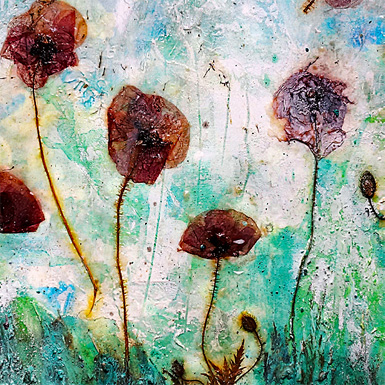 Gearbeitet wird auf Leinwand, Holz oder Karton. Gepresste Pflanzen und gefundene Objekte werden in die Bilder eingearbeitet. Wir schichten gefundene Objekte aus der Natur mit Spachtelmassen, Pigmenten und Firnissen. Rost entsteht, indem wir Eisen-, Kupfer- und Bronzelösungen hinzufügen. Dadurch erhalten unsere Werke nach einiger Zeit eine interessante Patina. Auch hier haben wir ein breites Gestaltungsspektrum.
