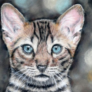 Haar für Haar, Strich für Strich – in diesem Workshop lernen Sie, wie man Katzen realistisch mit Pastellstiften auf Sandpapier (Pastelmat) malt.