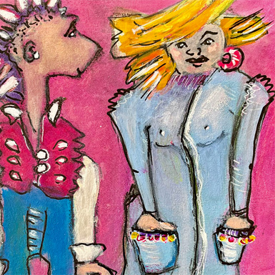 Sie erfinden Figuren, die aus einer anderen Welt zu kommen scheinen: mal witzig, mal skurril, mal verrückt. Dabei mischen Sie Malerei und Zeichnung, lassen sich von spontanen Ideen leiten und entwickeln Bilder, die eine Geschichte erzählen oder sogar eine Serie bilden.