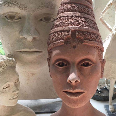 An diesen zwei Tagen modellieren Sie mittelgroße Köpfe in feinem Ton. Gearbeitet wird direkt auf ein einfaches Gerüst aus Metall, sodass die Schwerkraft des Tones Sie nicht behindert. Zunächst beschäftigen Sie sich kurz mit den geometrischen Formen des Kopfes und den Proportionen des Gesichtes. Welche Form hat der Kiefer? Wo sitzen die Augen und welchen Abstand haben sie voneinander? Wie weit ragt die Nasenspitze nach vorne? Schritt für Schritt lernen Sie, die einzelnen Teilformen zu modellieren.