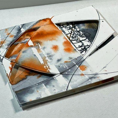 Sie gestalten zunächst mit Tinte oder Tusche einen Hintergrund, lassen die Farben miteinander reagieren, die sich regelrecht umarmen und genießen bewusst diesen meditativen Prozess. Die Federn werden auf diesen Blättern tanzen und zeigen Ihnen, wo sie hin wollen. Die entstandenen Hintergründe werden unterteilt, beschnitten, in unterschiedlichen Höhen übereinander aufgebracht und somit wird eine dreidimensionale Wirkung erreicht.