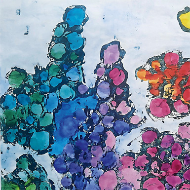 Sie erstellen zwar eigene Schablonen aus Karton (oder mithilfe der Heißklebepistole), arbeiten aber abgewandelt und experimenteller, freier mit dieser Technik. Freude am Spiel und intuitiven Arbeiten bilden also eine gute Grundlage für diesen Kurs. Wer mag, arbeitet in kleinen Serien und gerne intuitiv.