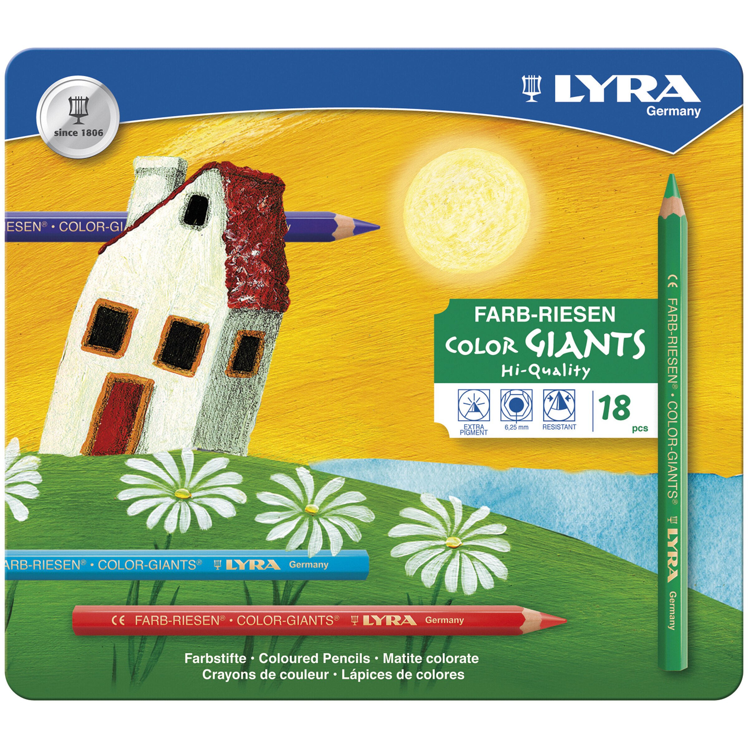 Die Riesenfarbstifte mit extradicker Mine (Ø 6,3 mm) und besonders hoher Farbkraft sind hervorragend geeignet für flächiges, künstlerisches Gestalten. Sie sind bruchsicher, wirtschaftlich im Verbrauch und wahlweise mit naturbelassenem oder lackiertem Holzmantel erhältlich.