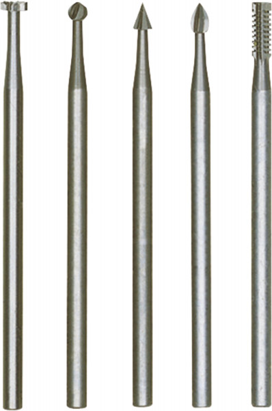 Bei den stabilen Frässtiften aus hochwertigem Wolfram-Vanadium-Stahl wurden Schaft und Frästeil aus einem Stück gefertigt. Die präzise geschliffene Verzahnung gewährleistet höchste Rundlaufgenauigkeit bei gleichzeitiger Elastizität. Damit sind die Frässtifte prädestiniert für Freihandarbeiten. Einsatzbar sind sie zum Ausarbeiten, Formen, Profilieren und Nuten von Weich- und Hartholz, NE-Metallen, Edelmetallen sowie Kunststoff und Gips. Schäfte Ø 2,35 oder 3,0 mm. Passend für Proxxon Industrie-Bohrschleifer (Best.-Nr.: PROXIBE).