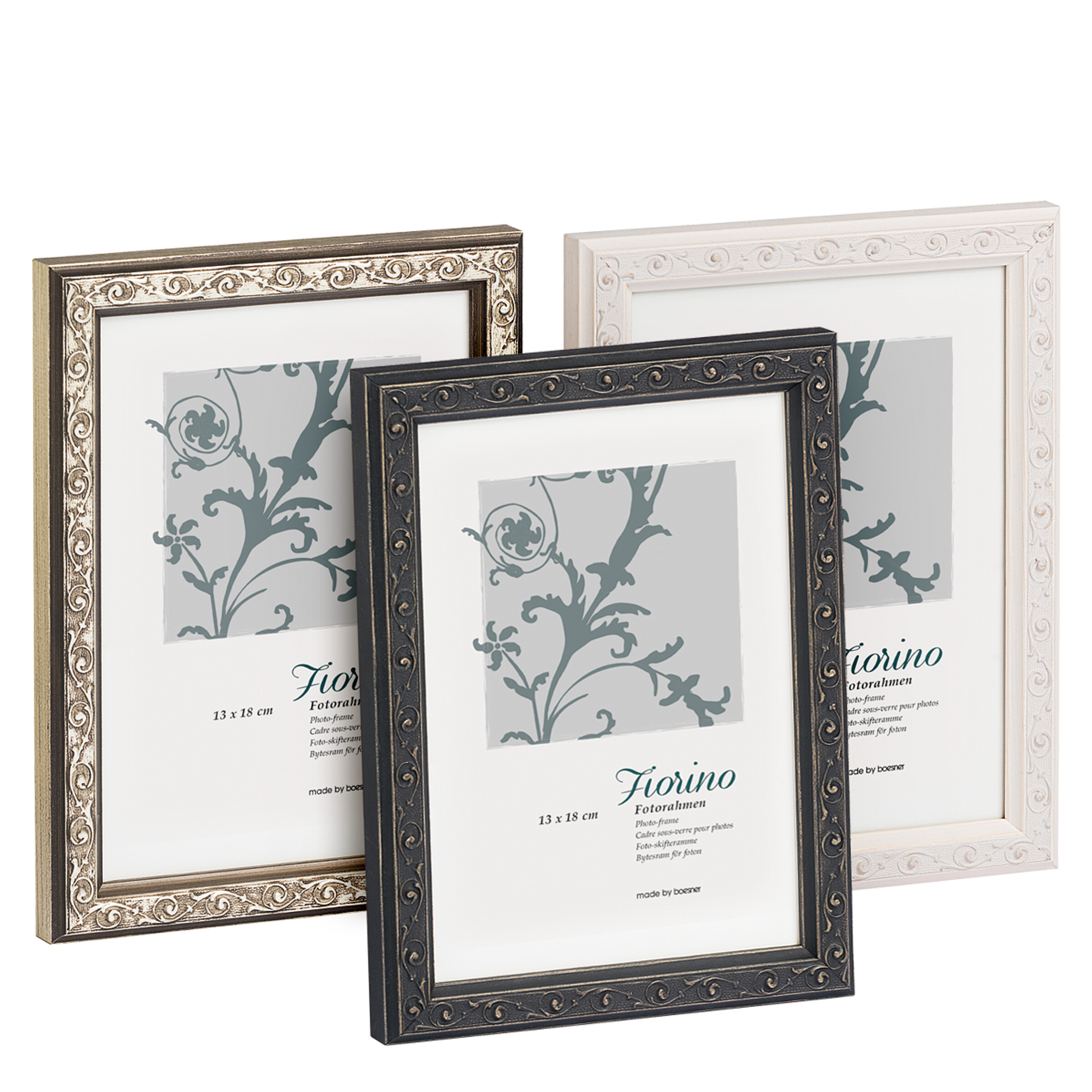 Der Massivholzrahmen mit schmalem Profil in Nostalgie-Optik ist mit filigranen Verzierungen versehen. Fiorino ist ideal geeignet für die Einrahmung von Fotos, Zeichnungen, Drucken etc. Der Rahmen wird aus heimischer Kiefer in deutschen...