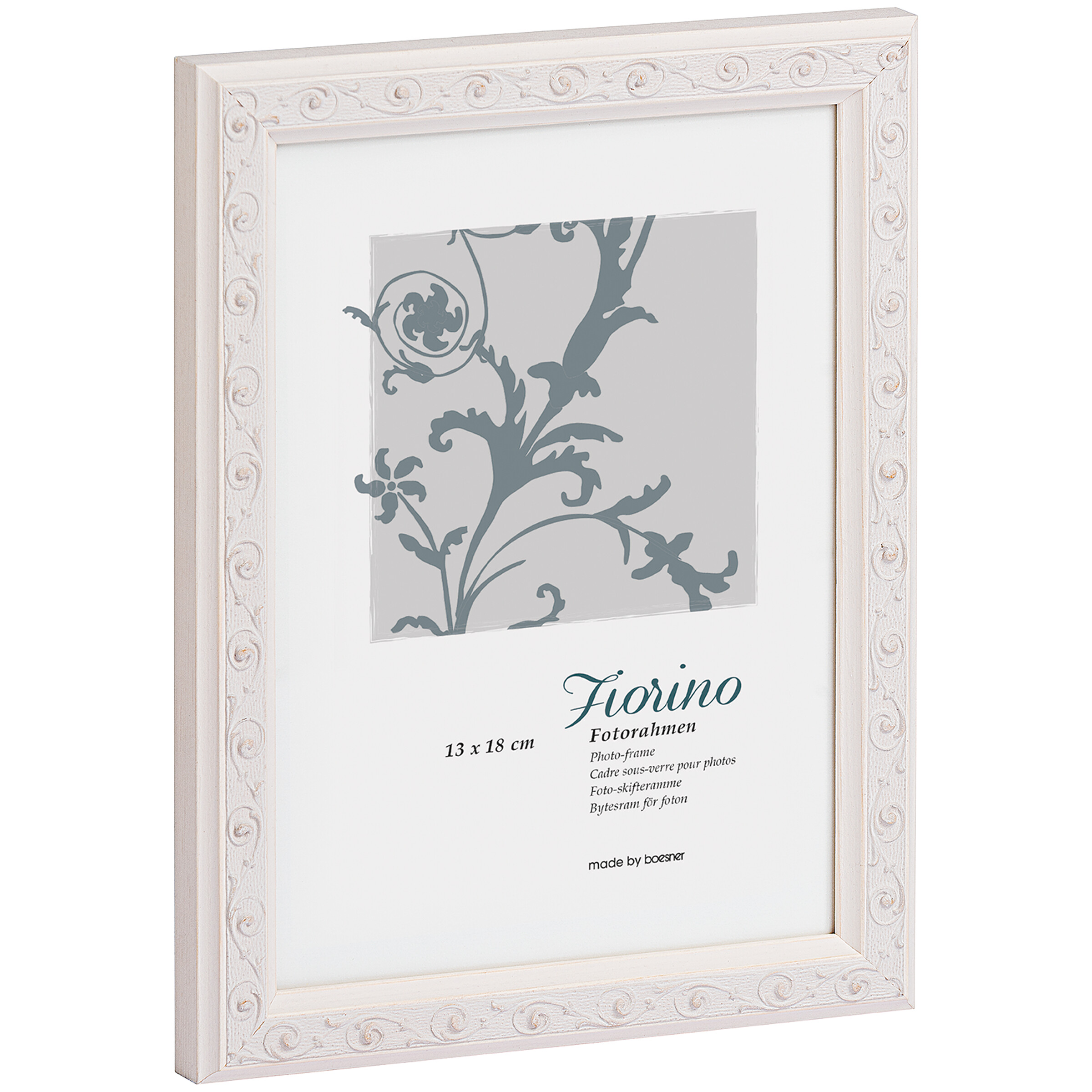 Der Massivholzrahmen mit schmalem Profil in Nostalgie-Optik ist mit filigranen Verzierungen versehen. Fiorino ist ideal geeignet für die Einrahmung von Fotos, Zeichnungen, Drucken etc. Der Rahmen wird aus heimischer Kiefer in deutschen...